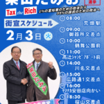2月3日(火)昭和区の街頭演説予定 8:00 荒畑駅9:00 御器所交差点10:00 鶴舞公園前11:00 高辻シャンピアポート前14:00 川名交差点15:00 広路通1交差点16:00 ヤマナカ安田店向かい18:30 ... 続きを読む →