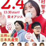 2/4(水)13:30〜田村智子委員長街頭演説会 栄オアシス21前 小選挙区候補も1分スピーチあります 2月4日(水)緑区の街頭演説予定 8:00 鳴海駅9:00 坊主山公園付近10:00 なるぱーく11:00 緑スポー ... 続きを読む →