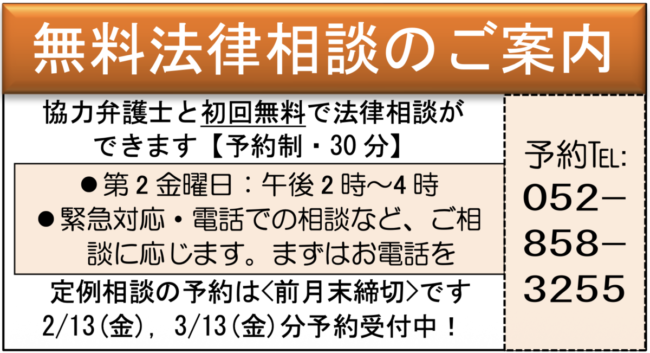 | 2/13(金)14:00〜 | 無料法律相談 | 昭和区委員会 |