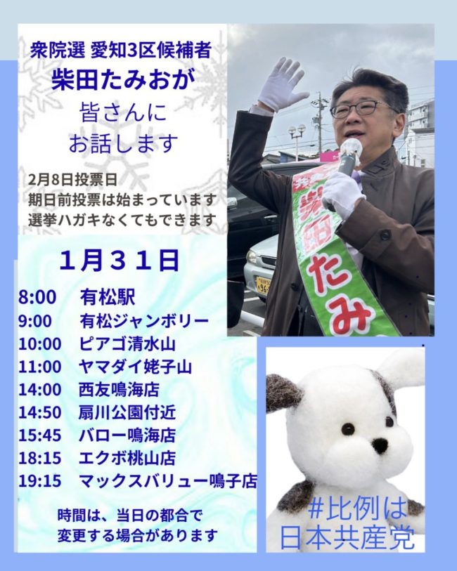 1月31日(土)緑区の街頭演説予定