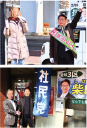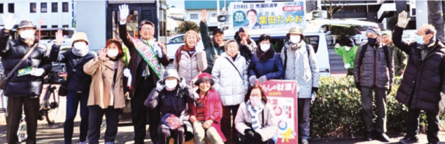 この選挙戦、皆が各々の得意を活かして、電話、LINE、街宣で支持を訴えた。昭和区後援会は新春のつどいで柴田さんを真ん中に「ガンバロウ!」と決起した。「共産党と書くよ」「柴田さんがんばって!」の声に加えて、多くの方からたくさんのカンパが寄せられ感謝!
